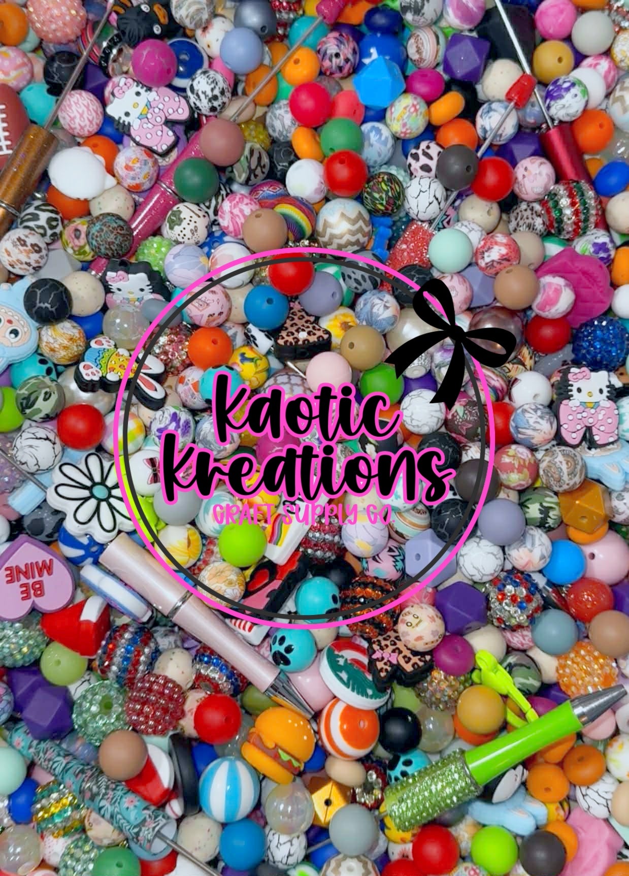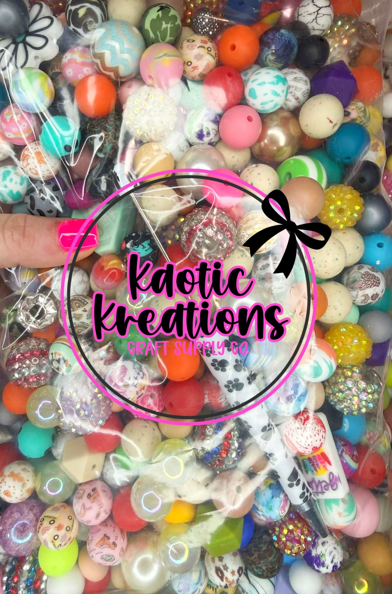 Each bag contains 2 to 4 pounds of silicone beads, acrylic beads, silicone focals, beadable accessories, and tons more!!