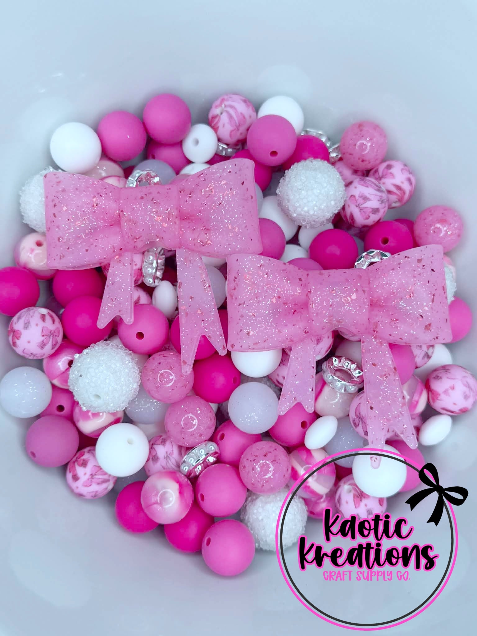 ACRYLIC SILICONE BEAD MIX W/JUMBO BOWS #107 (32ct)